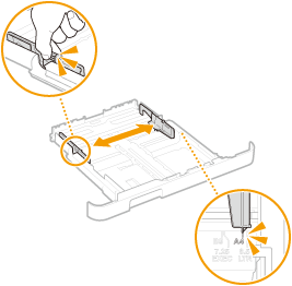 Press the lock release lever to slide the paper guides outward. On the MF635Cx / MF633Cdw / MF631Cn, there is no lock release lever for the side paper guides.