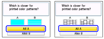 2. The confirmation screens for white streaks and missing lines are displayed alternately. Select the pattern that is closer to the nozzle check pattern that you printed.