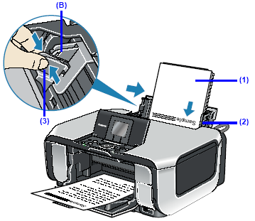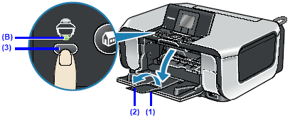 (3) Press the Paper Feed Switch so that the Cassette lamp (B) lights.