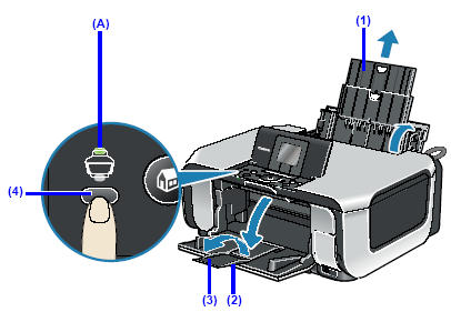 (4) Press the Paper Feed Switch so that the Rear Tray lamp (A) lights.