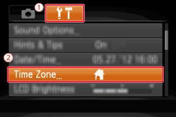 Operate the ⋖ directional buttons ⋗ up or down to select [Time Zone].