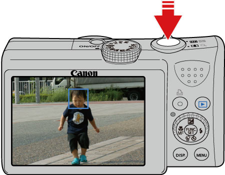 When the [Servo AF] mode is set to [On], the focus and exposure are continuously adjusted on human subjects while the ⋖ Shutter Button ⋗ is being pressed halfway. Using the [Servo AF] mode together with the [Face AiAF] function, you can shoot moving human subjects with optimal focus and exposure.