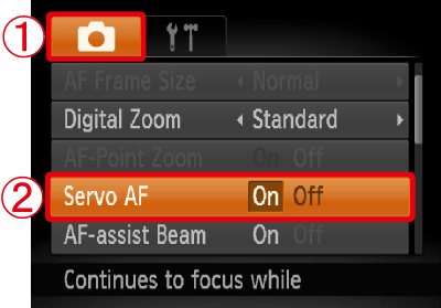 Operate the ⋖ directional buttons ⋗ to set [Servo AF] to [On].
