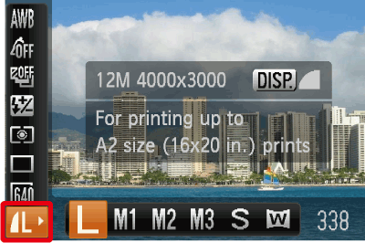 Operate the ⋖ directional buttons ⋗ up or down to select [Large] ().