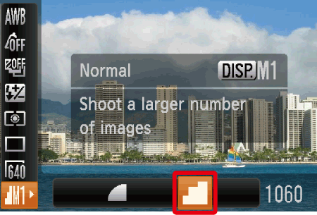 5. Change the compression ratio setting of the image. If you press the ⋖ DISP. ⋗ () button, the following screen appears.