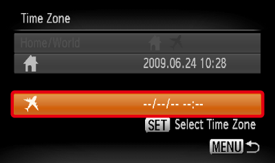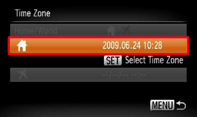 If () appears on the screen, [Time Zone] is set to the world time zone.