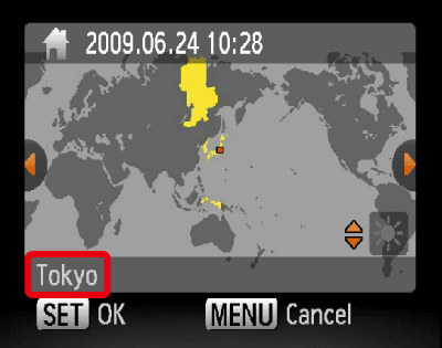 Operate the ⋖ directional buttons ⋗ left and right, or turn the ⋖ Control Dial ⋗ to select the home time zone ([Tokyo] is selected in the above image).