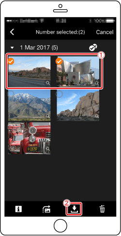 ] on the bottom right of the screen. The selected images will be saved to the smartphone.
