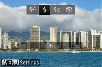 The instructions below refer to the setting that makes the [Flash] fire for each shot (On).