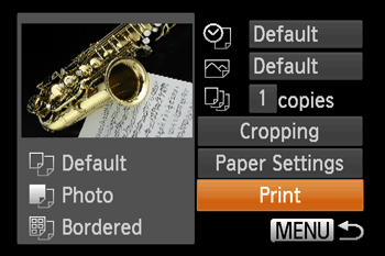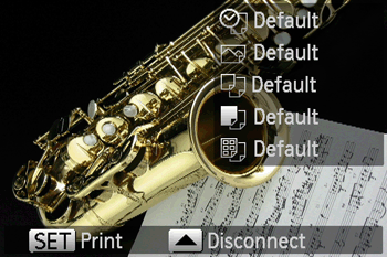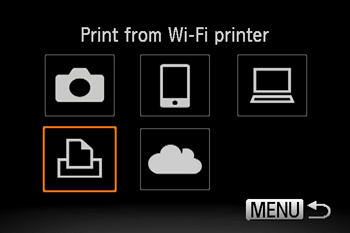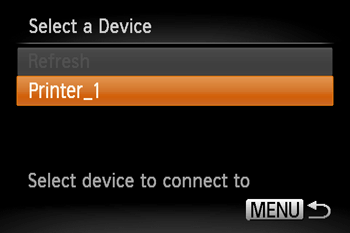 5. Once the printer is ready for the connection, the printer’s name will be displayed on the camera. Press the [ ] or [